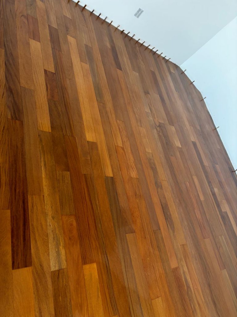 Para ambientes com aquecimento interno, o estruturado é ideal, diferente da madeira maciça, ele não empena nem abre frestas. E como vem pronto (já com verniz resistente), evita lixamentos e sujeira na obra.