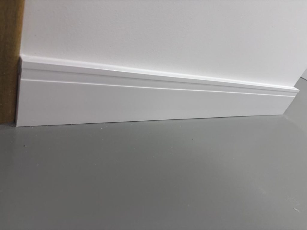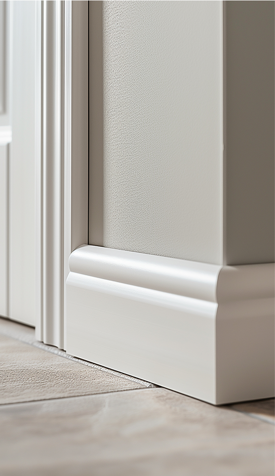 Trabalhamos com diferentes perfis e materiais para atender projetos variados — do mais minimalista ao mais clássico. O MDF é indicado para ambientes secos, com acabamento branco, liso ou frisado. Já os rodapés de poliestireno são resistentes à umidade e têm ótima performance em banheiros, cozinhas e áreas de serviço.